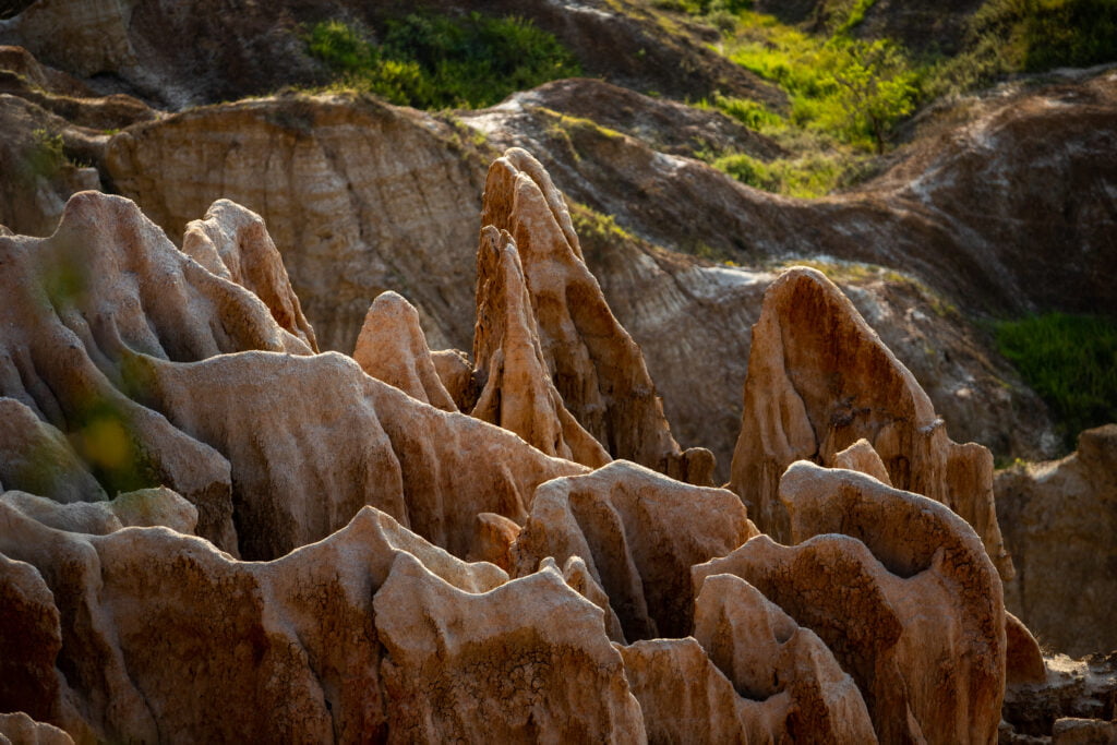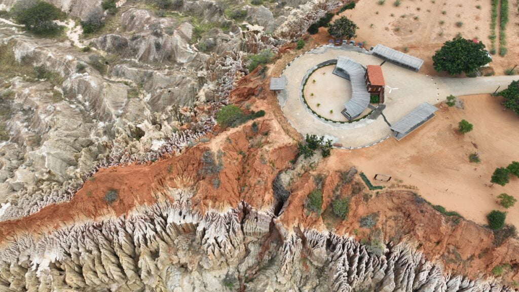 O Miradouro da Lua é um acidente geográfico causado por milhões de anos de transformações geológicas. As falésias de textura lunar estão em permanente mutação, o que torna o espaço dinâmico mas também o coloca em perigo de extinção. A premissa do nosso projecto de gestão é a preservação deste lugar. Para isso, plantamos espécies autóctones e garantimos um sistema de drenagem de águas eficaz.
